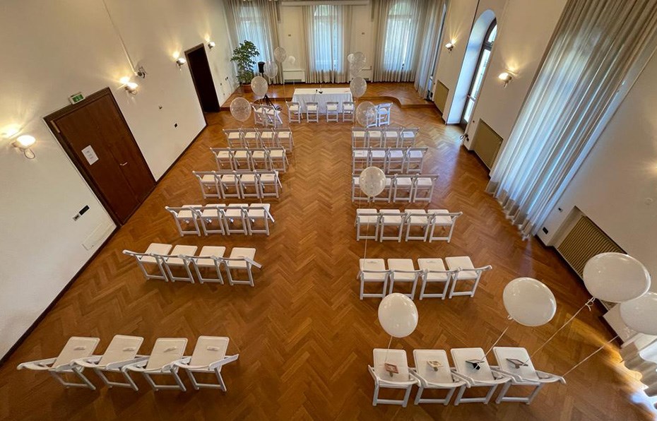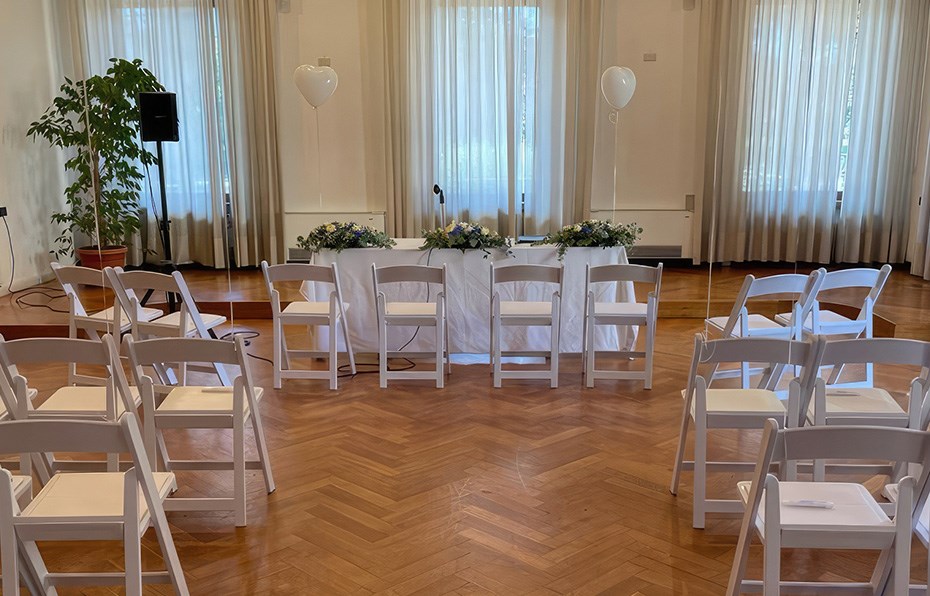 The timeless charm of this hall will transport you to another era. The beautiful windows overlooking the veranda and the Casino gardens will make your ceremony magical.