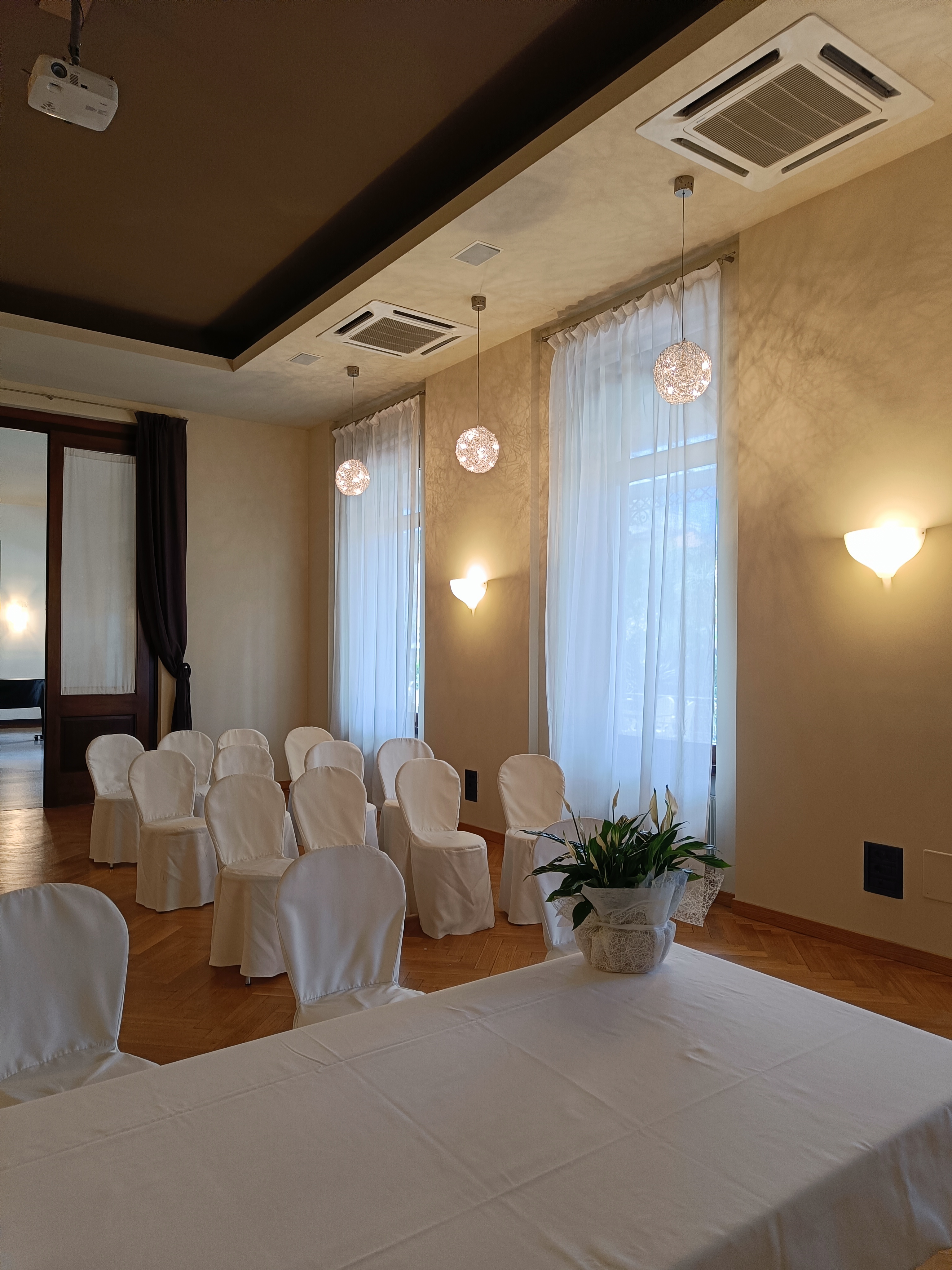 Questa splendida location si trova all’interno del palazzo del Casinò e le sue grandi e meravigliose vetrate si affacciano sulla veranda in stile Liberty: un connubio perfetto di eleganza e fascino, dove l'atmosfera romantica e l'architettura raffinata creano un'esperienza indelebile.
